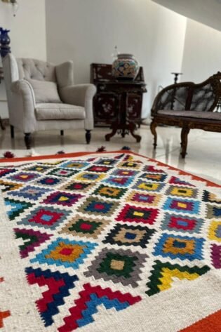 سجادة، سجادة كليم، صوف 100% مقاس 202 × 150 سم، ديكور يدوي متعدد الالوان من انتاج ايجيبت أنتيكس