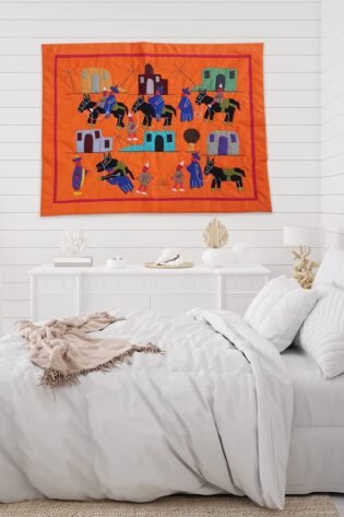 سجادة خيامية للتعليق على الحائط مقاس 74 سم عرض × 56 سم ارتفاع، مصنوعة من القطن بنسبة 100%، زينة متعددة الالوان بصناعة يدوية من انتاج ايجيبت أنتيكس