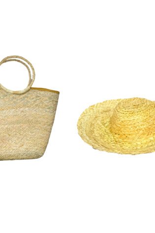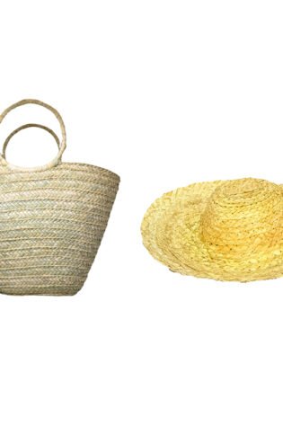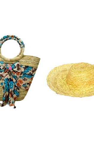 كمية عرض الصيف شنطة صغيرة مقاس 40 سم عمق 25 سم + قبعة هدية قطُر 30 سم صناعة يدوية 100_ طبيعي من جريد النخل من انتاج ايجيبت أنتيكس