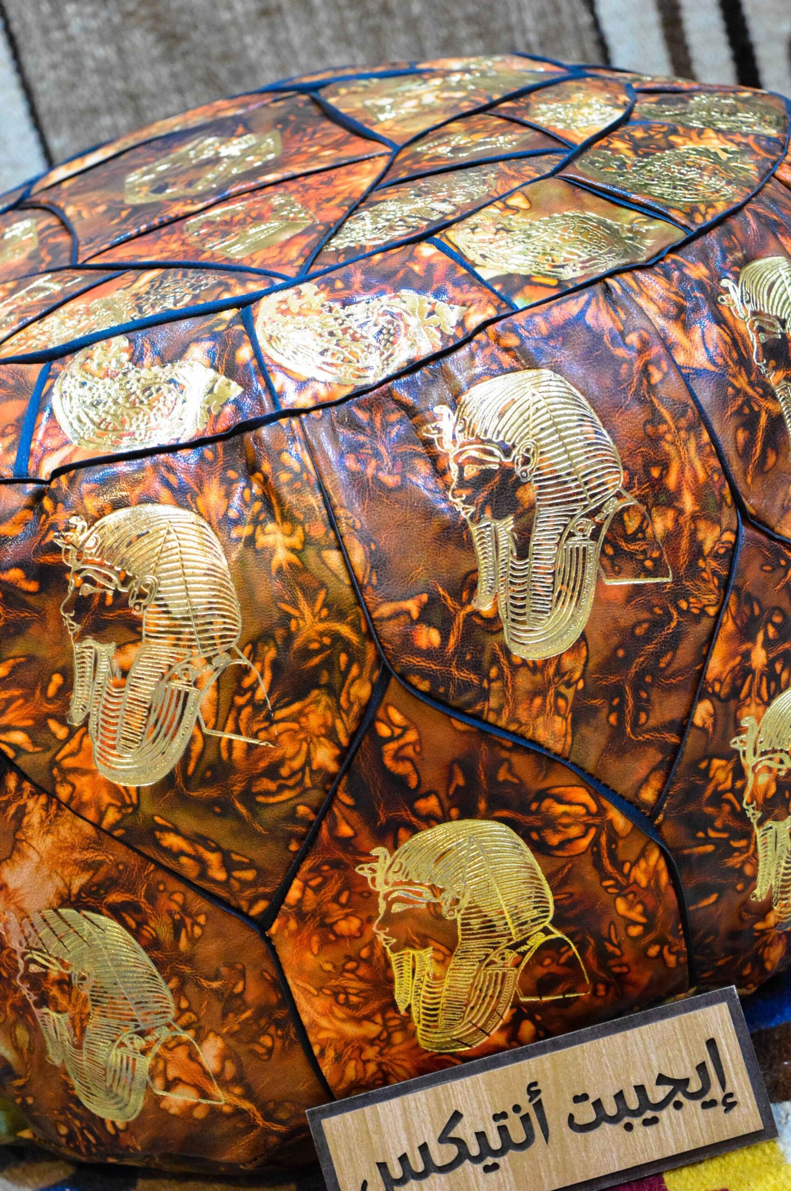 بوف فرعوني جلد طبيعي 100% لون بني × ذهبي من انتاج ايجيبت أنتيكس صناعة يدوية 100%