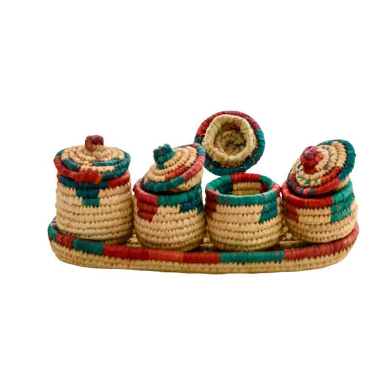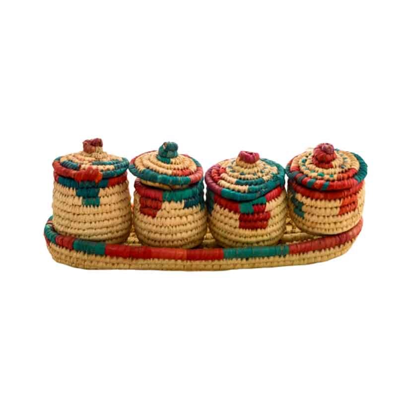 A set of four colorful spice jars made of four handmade natural 100_ palm leaves by Egypt Antiques