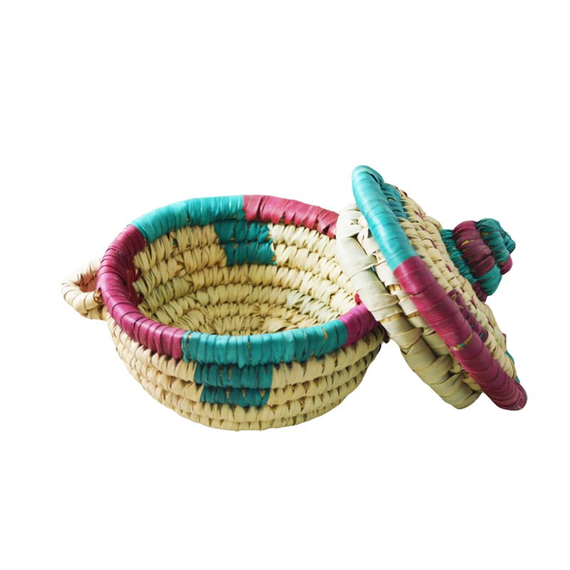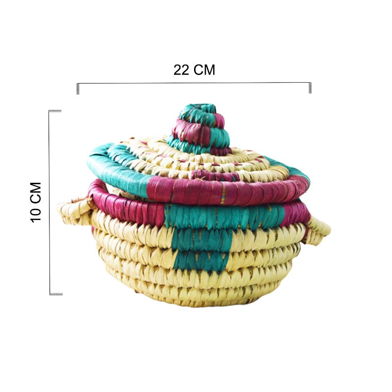 18 cm in diameter and 11 cm in height, handmade from palm leaves by Egypt Antiques