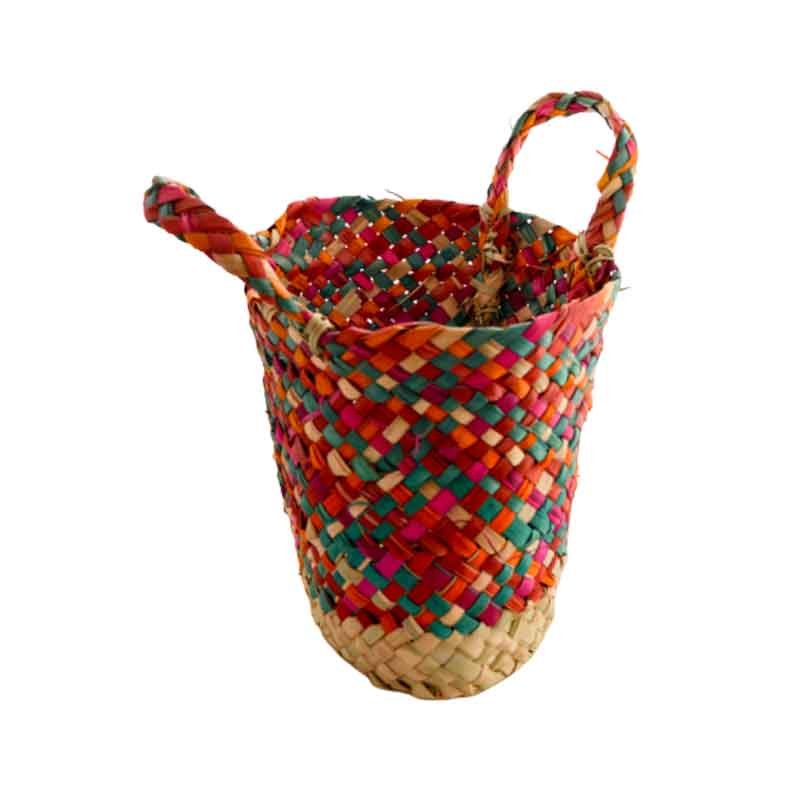 Handmade basket 32 cm high, 14 cm in diameter, handmade 100_ natural from palm leaves, produced by Egypt Antiques