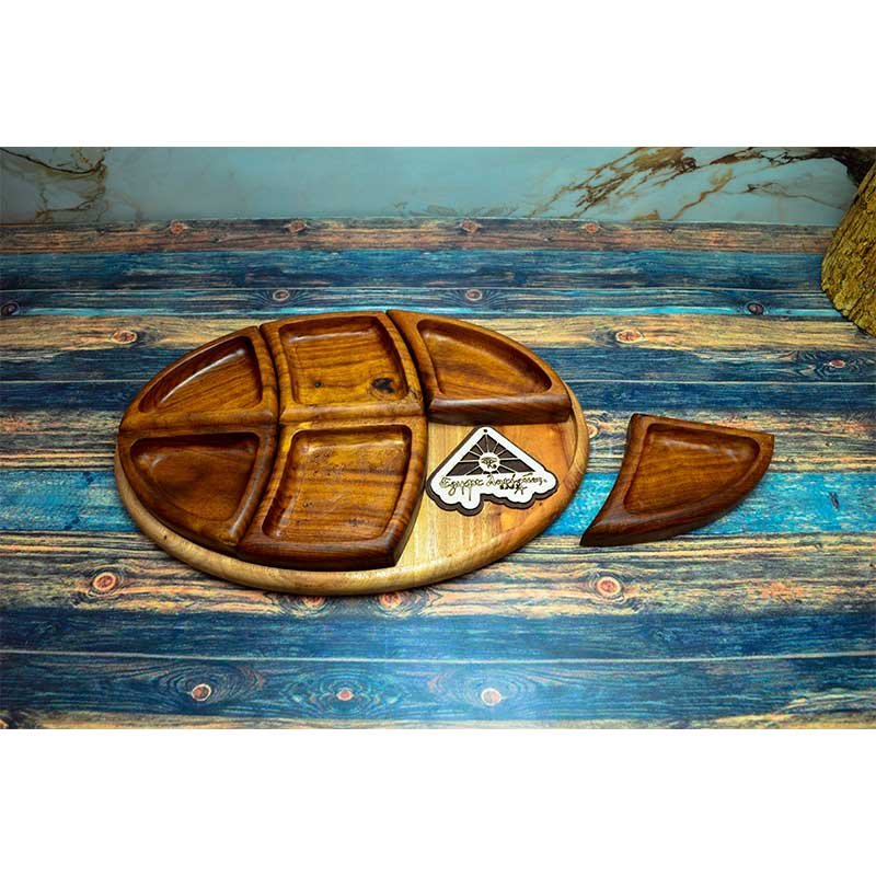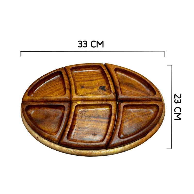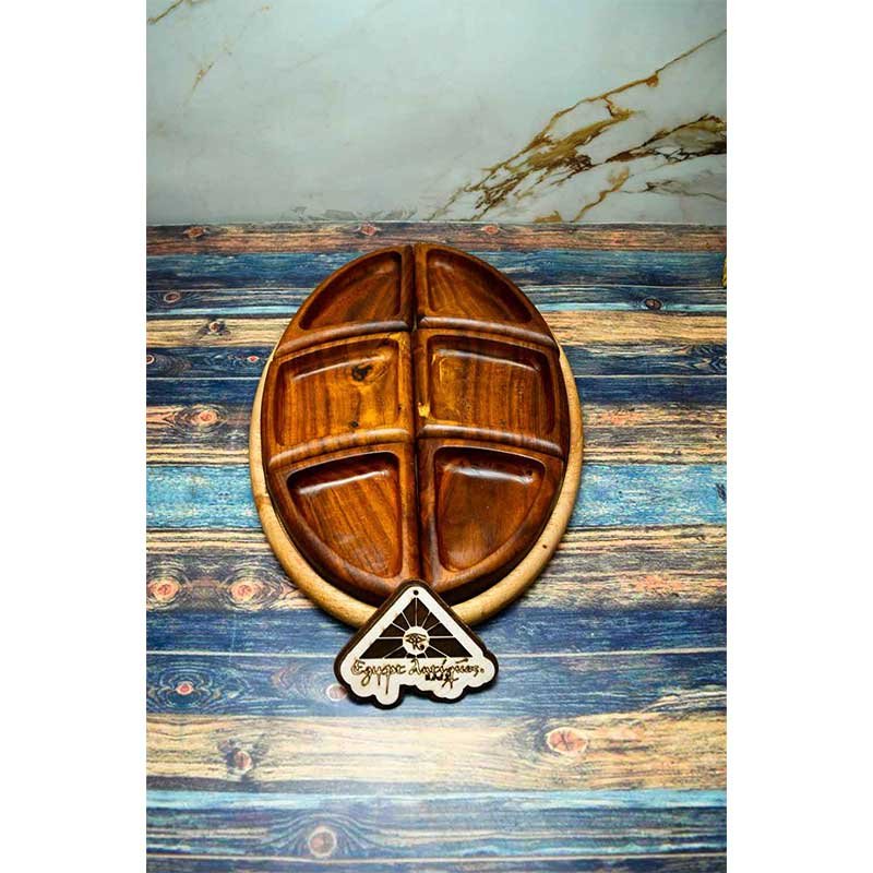 A handmade oval hexagonal wooden food or snack dish, made from healthy wood with 100% natural colors from the heart of the tree, produced by Egypt Antiques