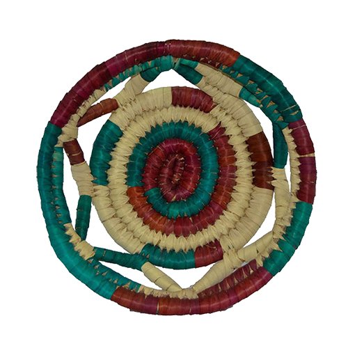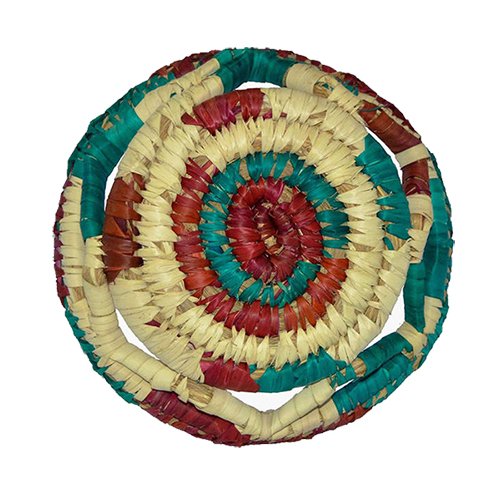 طبق مفرغ ملون قطُر 20 سم صناعة يدوية طبيعية 100_ من جريد النخل من انتاج ايجيبت أنتيكس