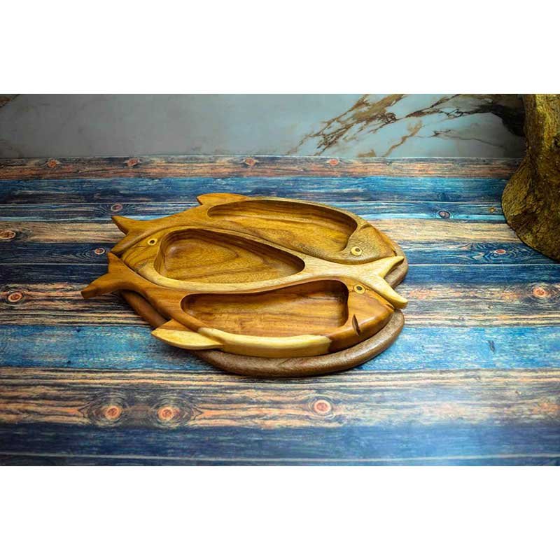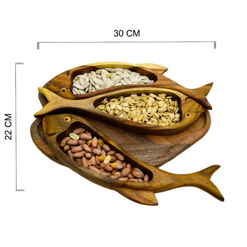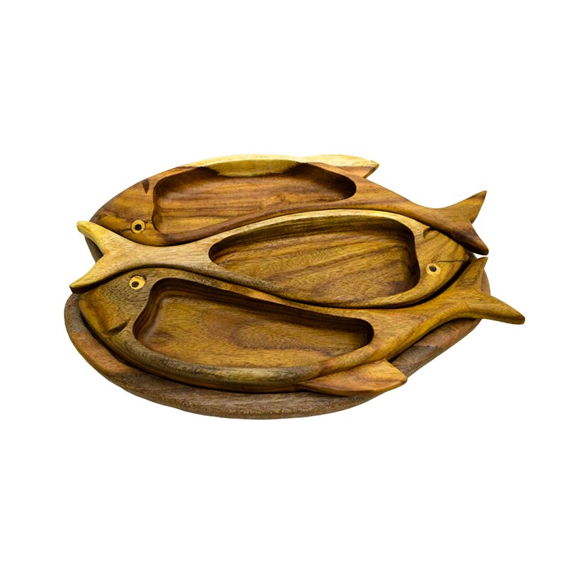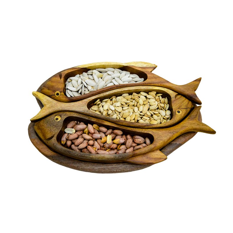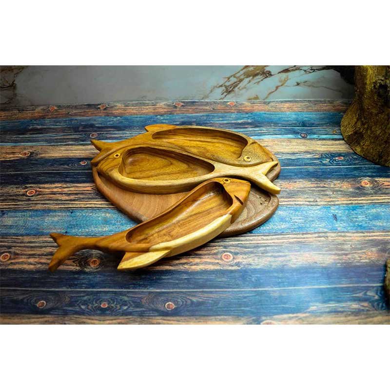 طبق 3 سمكات صناعة يدوية من الخشب الصحي الوان طبيعية 100% من قلب الشجرة من انتاج ايجيبت أنتيكس