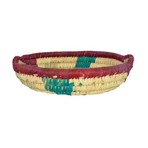 A round colored dish with a diameter of 38 diameter and a height of 7 cm,andmade by natural handmade 100_ from palm leaves produced by Egypt Antiques