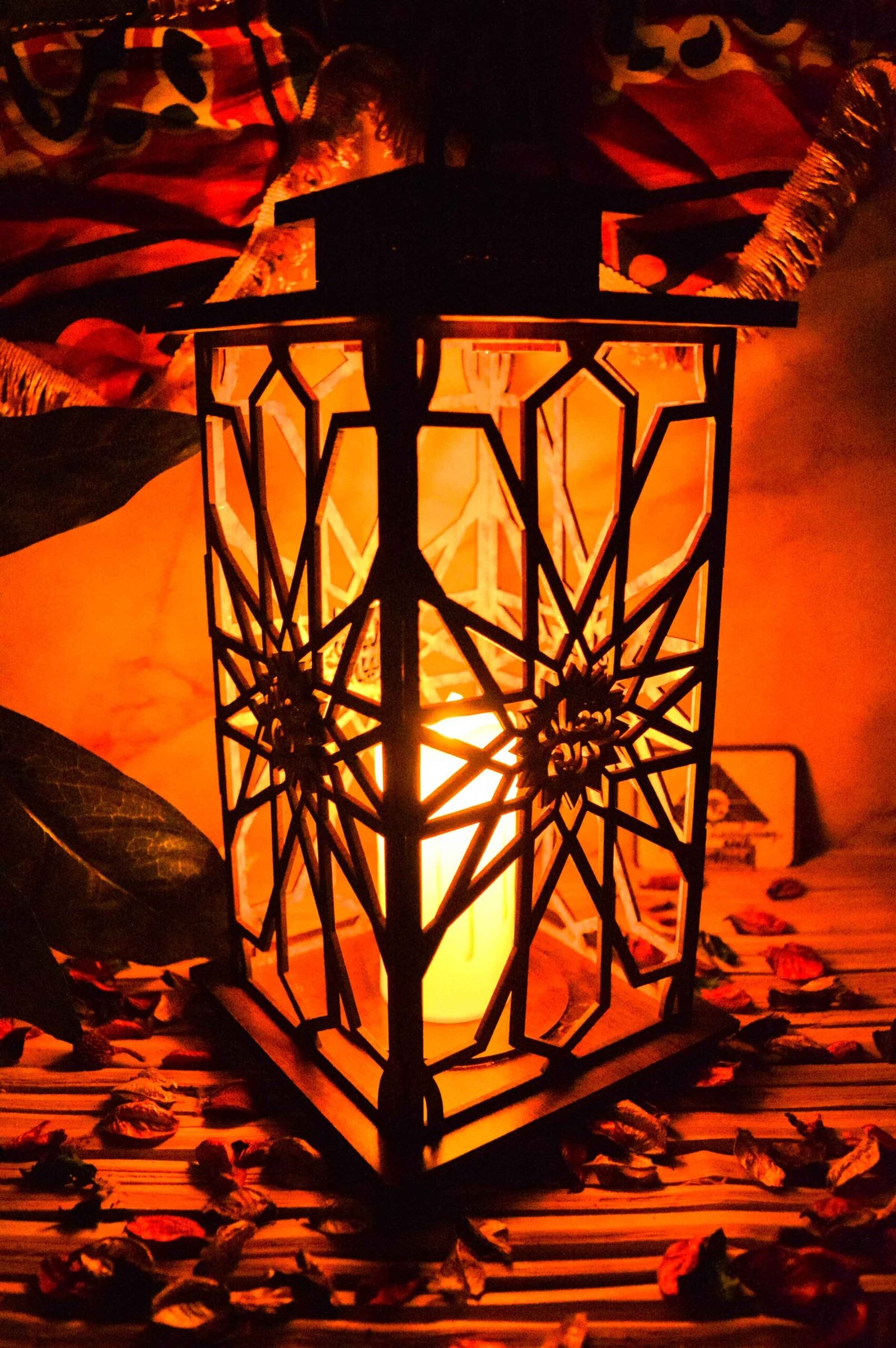 Ramadan Lantern in a new design with Islamic patterns, large size, made of wood, produced by Egypt Antiques