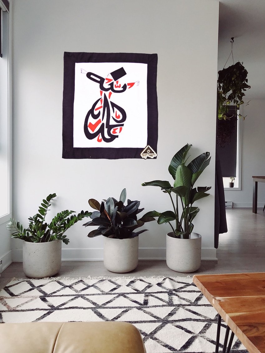 فن الابرة رسم كلمة (الحمد الله على شكل درويش) قماش قطن طبيعي صناعة يدوية من ايجيبت انتيكس