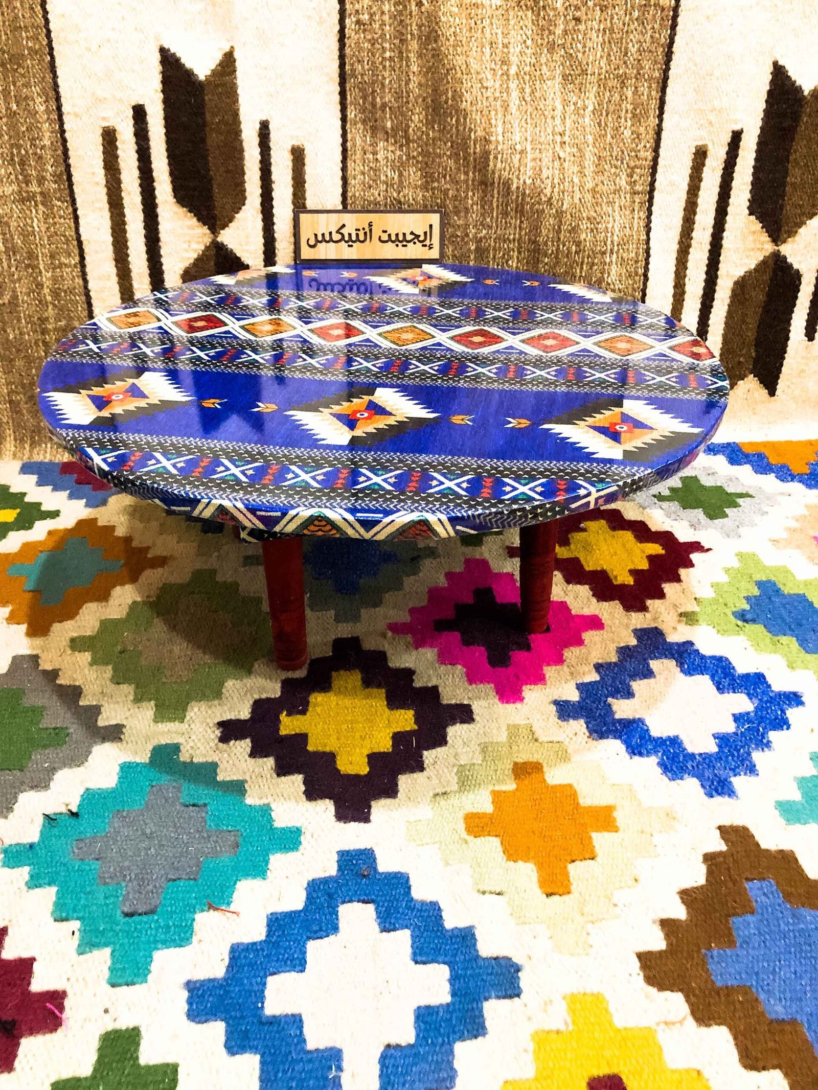 A blue Arabic seating set (table + 4 cushions) produced by Egypt Antiques, 100% handmade