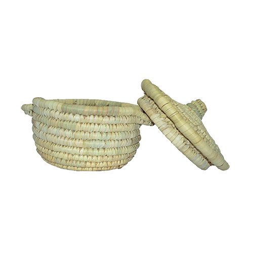 Plain bowl or drum 30 cm in diameter and 26 cm high handmade natural handmade 100_ of palm leaves produced by Egypt Antiques