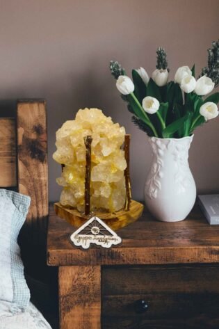 أباجورة ملح صخري بارز طبيعي 100% مع خشب الزيتون صناعة يدوية بالكامل من انتاج ايجيبت أنتيكس
