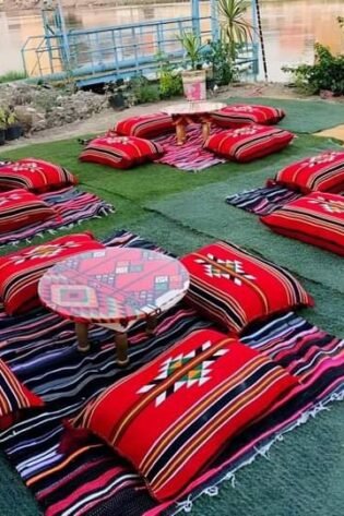 أعدة او مجلس على الطراز العربي مكونة من ترابيزة 4 خدديات كليم ارضي صناعة يدوية 100% من انتاج ايجيبت أنتيكس