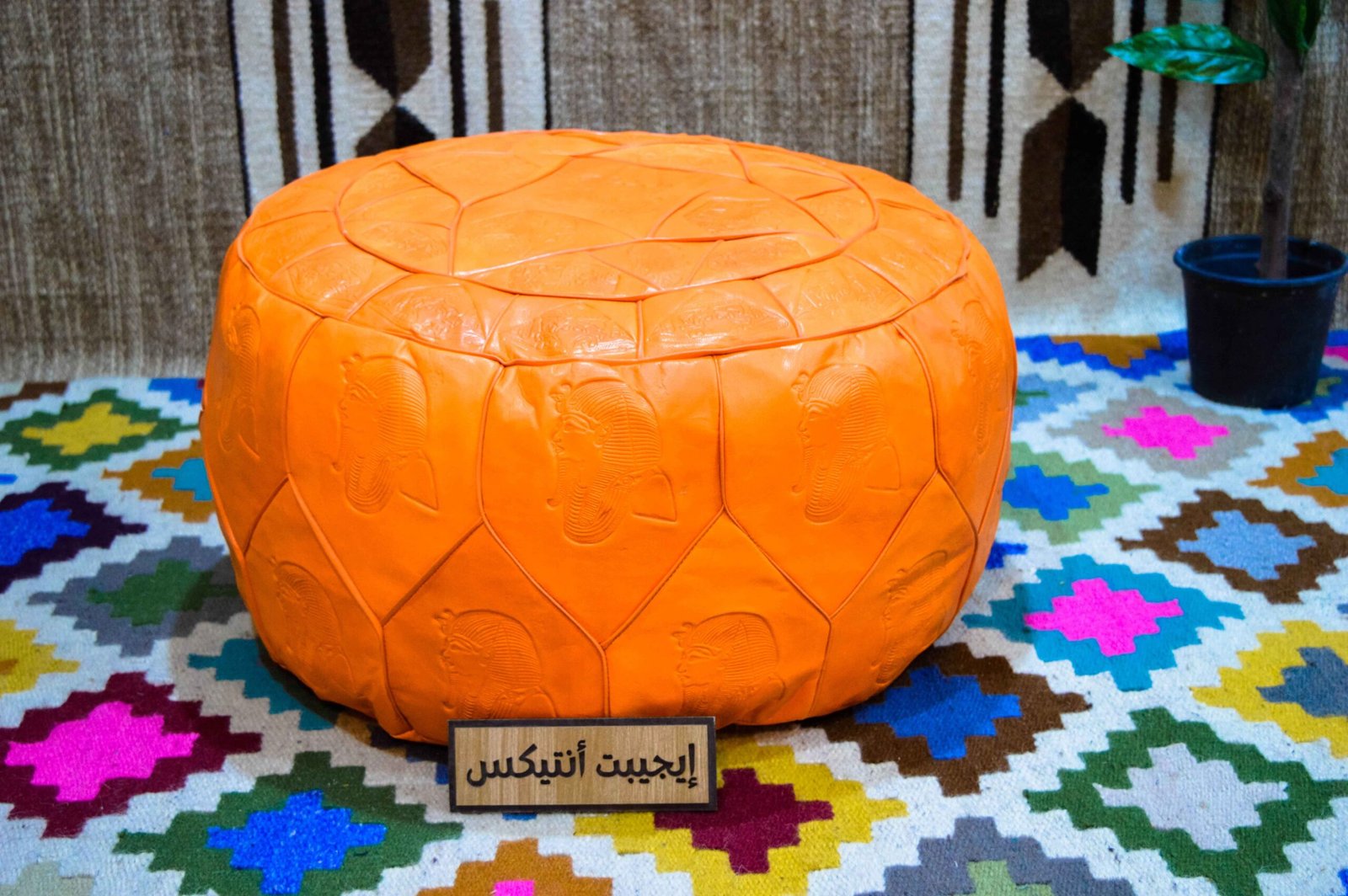 بوف فرعوني جلد طبيعي 100% لون برتقالي من انتاج ايجيبت أنتيكس صناعة يدوية 100%