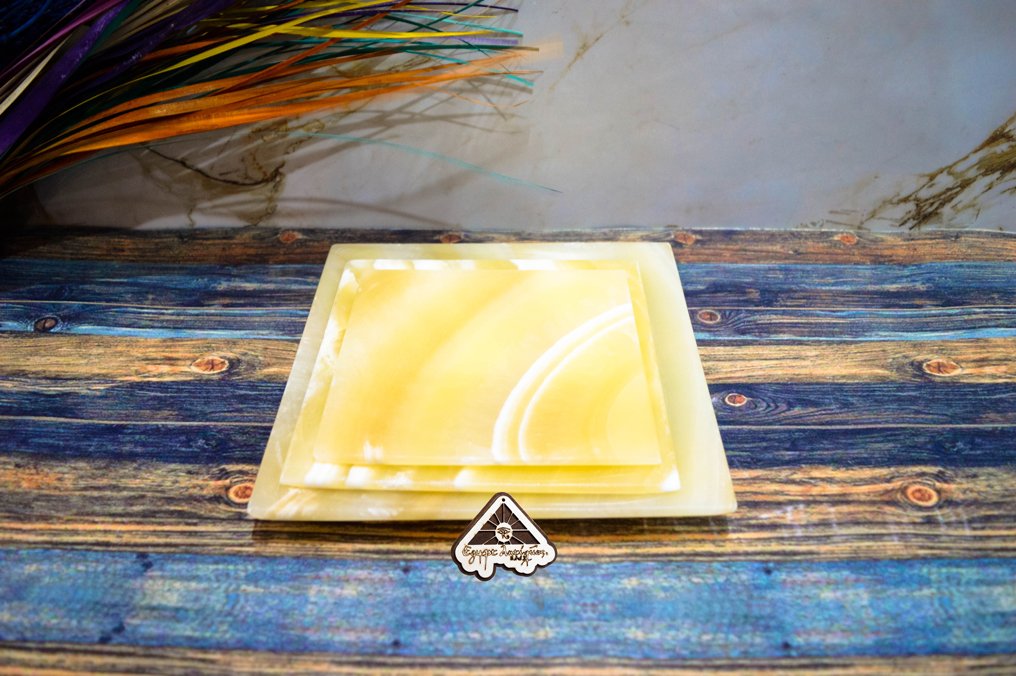 طقم اطباق مربع صحي من حجر الالباستر من ايجيبت انتيكس صناعة يدوية 100% طبيعي