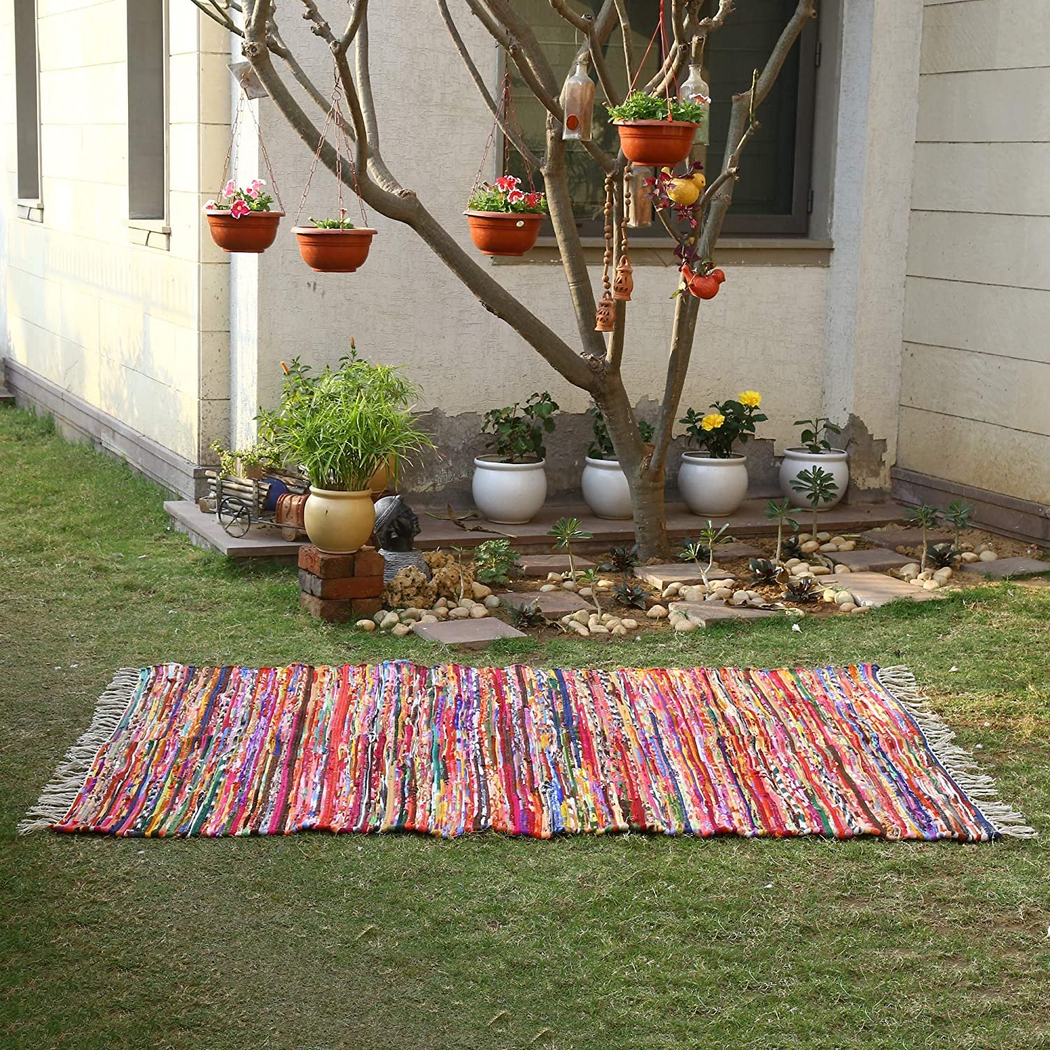 من ايجيبت انتيكس سجادة كليم يدوى الصنع مقاس 70×200 سم الوان متعددة خامات اعادة التدوير