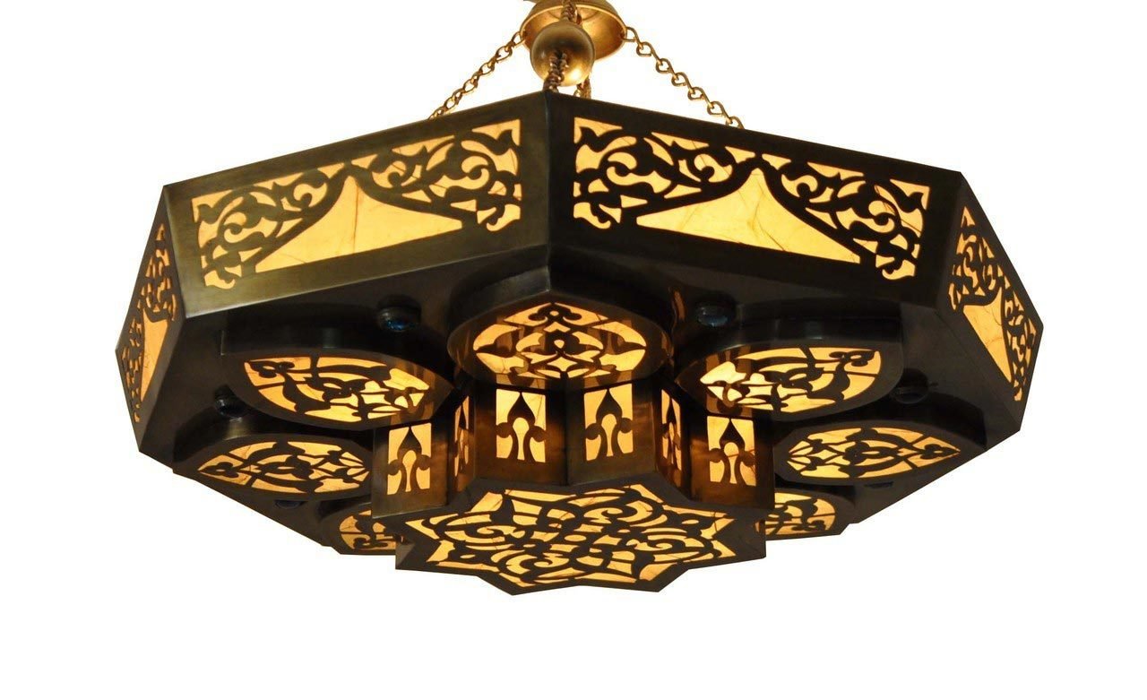 وحدة اضاءه – نجفة معلقة لمنتصف سقف شكل (أ) مغربي شرقي معدني للاستخدام الخارجي او الحديقة او للاستخدام الداخلي صناعة يدوية 100% انتاج ايجيبت انتيكس